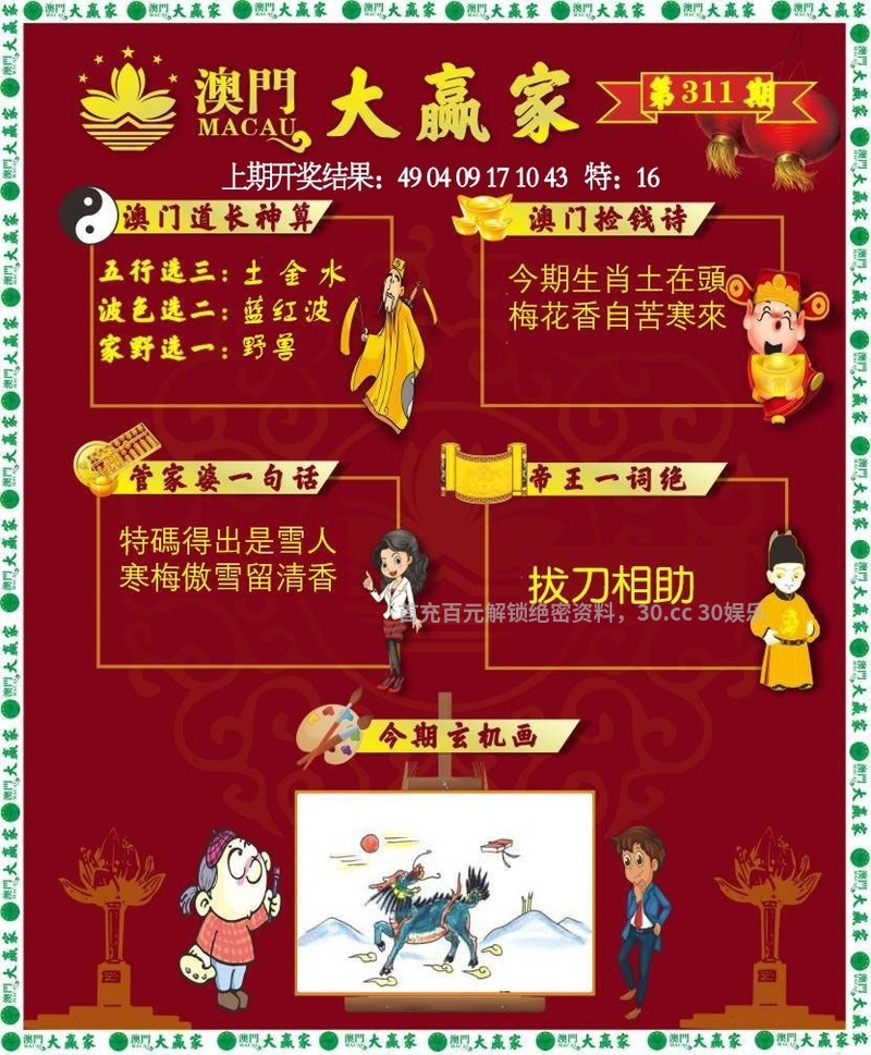 | 308期前后两肖【后肖+牛兔】开: |